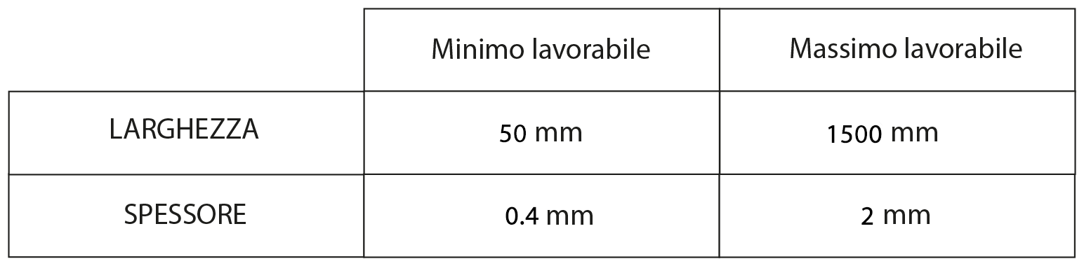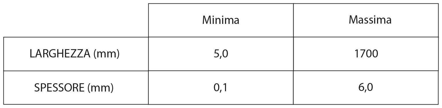 Siamo in grado di eseguire lavorazioni anche su coils di dimensioni non standard: Lavoriamo coils di larghezza fino a 1600mm, da 0.1mm a 7mm di spessore, 2000mm di diametro esterno con un peso massimo coils fino a 30,000 kg.